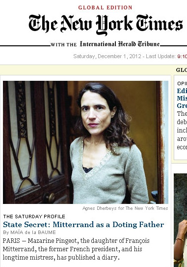 “Mazarine Pingeot, the daughter of François Mitterrand, the former French president, and his longtime mistress, has published a diary.”